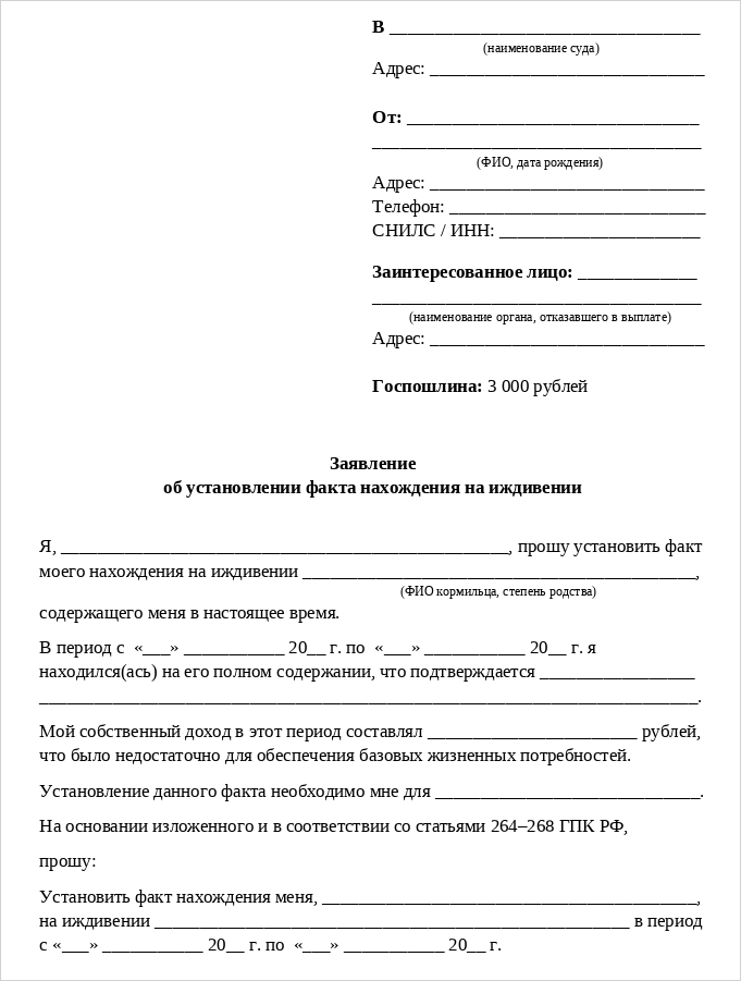 Подтвердить статус «на иждивении» через суд — это платное дело. По статье 333.19 Налогового кодекса, за подачу такого заявления в 2025 году придется заплатить госпошлину — 3 000 рублей.
