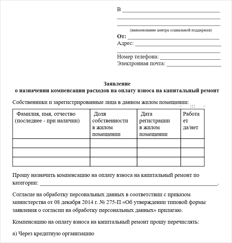 При подаче заявления потребуется подтвердить документами право собственности на жилье, отсутствие трудоустройства и состав семьи. Капремонт за предыдущий месяц должен быть уже оплачен. Компенсация обычно выплачивается на карту, поэтому обязательно укажите свои банковские реквизиты. Если у пенсионера в собственности находится несколько объектов недвижимости, льготу по капремонту одобрят только на один.