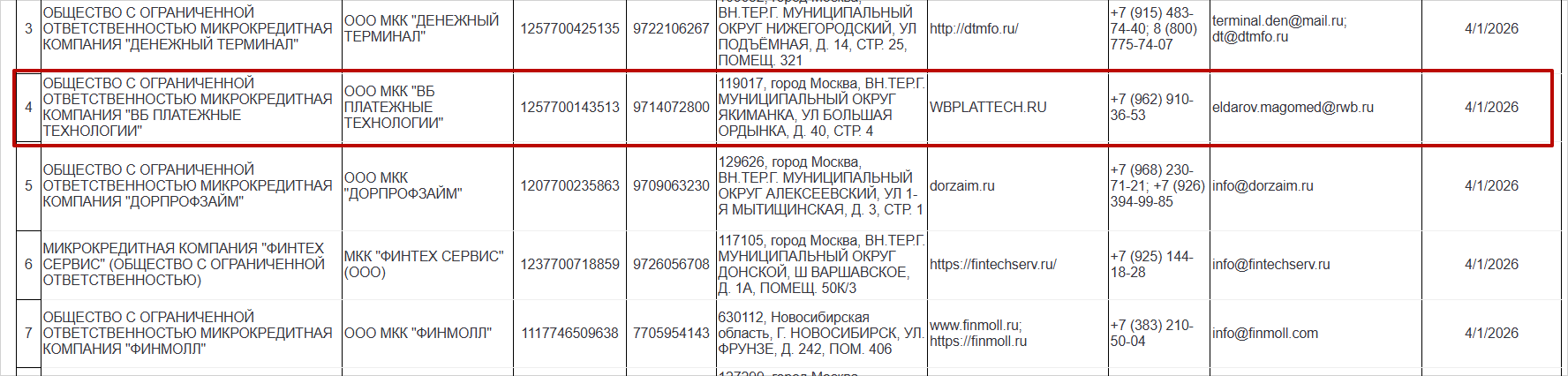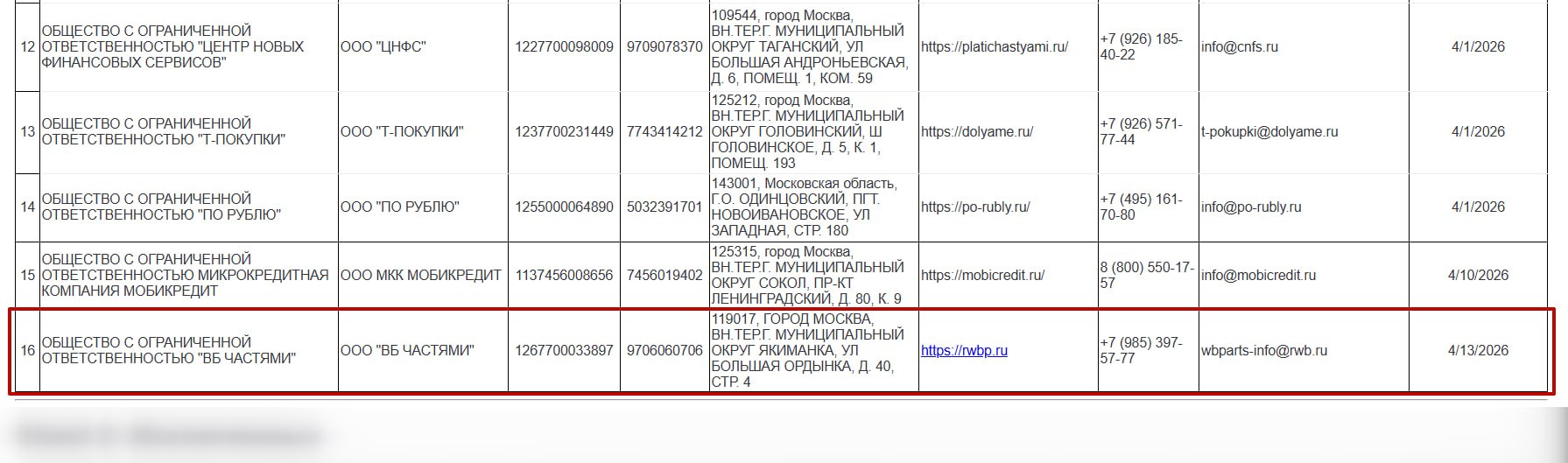Так, 16 строку реестра уже занимает ООО «ВБ Частями». Это новая компания, зарегистрированная как раз в 2026 году, — вероятно, специально для соблюдения нового закона.