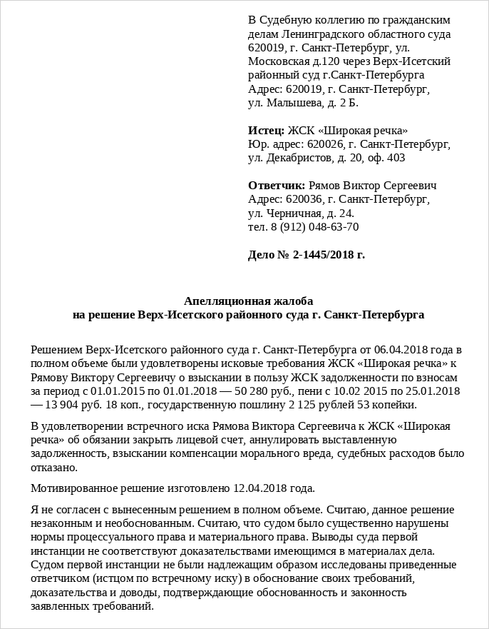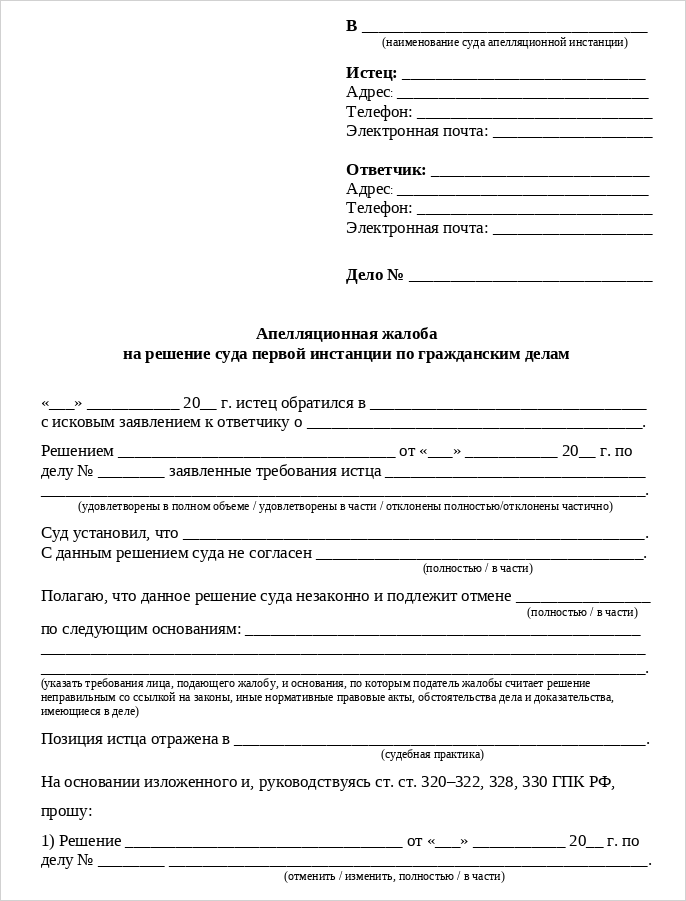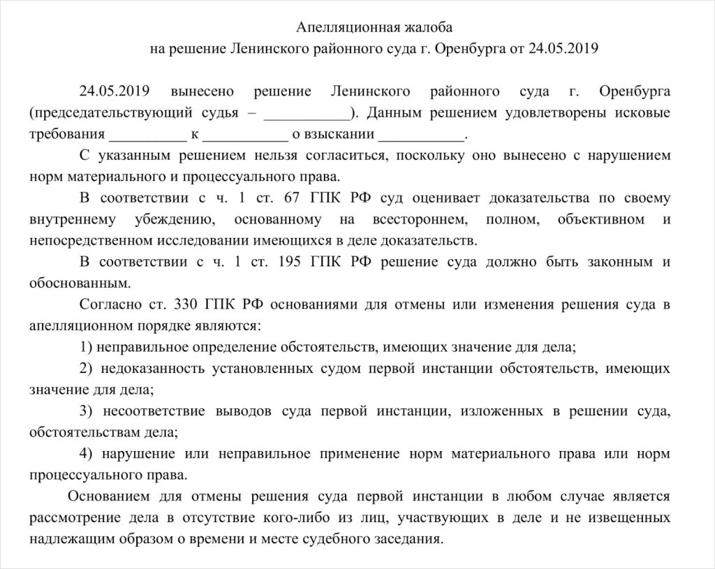 Как написать апелляционную жалобу по гражданскому делу: образец