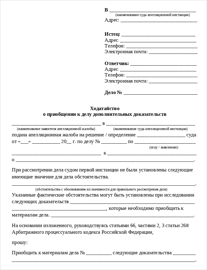 Чтобы приобщить к апелляционной жалобе новые доказательства, подайте ходатайство. Его можно лично отнести в канцелярию суда, отправить почтой или через систему «Правосудие».