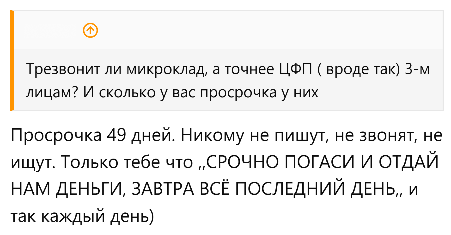 Наименование компании может ввести в заблуждение. «Центр Финансовой Помощи» не выдает кредиты и не помогает с деньгами. Это профессиональная коллекторская компания, которая работает с проблемными задолженностями и зарабатывает на их возврате.