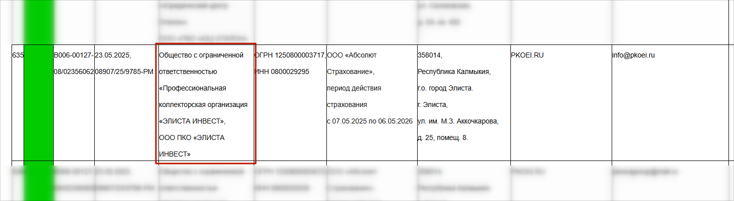 ПКО «Элиста Инвест» занимает в реестре 635 строку — это порядковый номер, который ничего не означает.