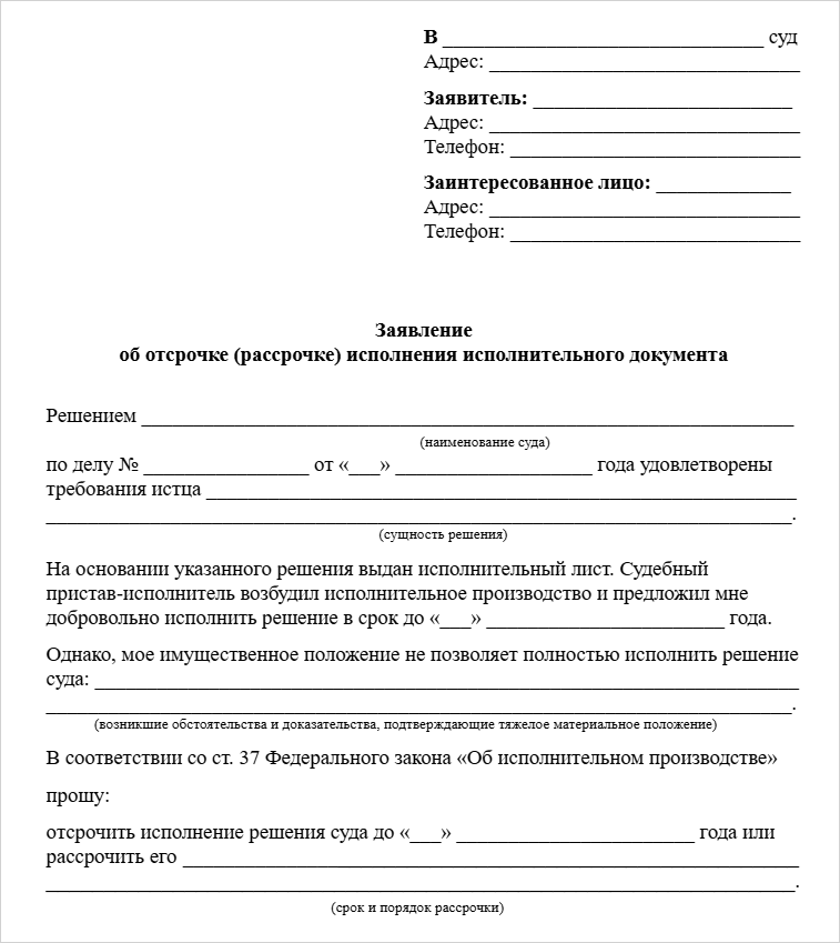 Чтобы получить отсрочку или рассрочку оплаты штрафа, подайте заявление в суд, который вынес постановление о его назначении. Самостоятельно ФССП не вправе давать должнику такие послабления.
