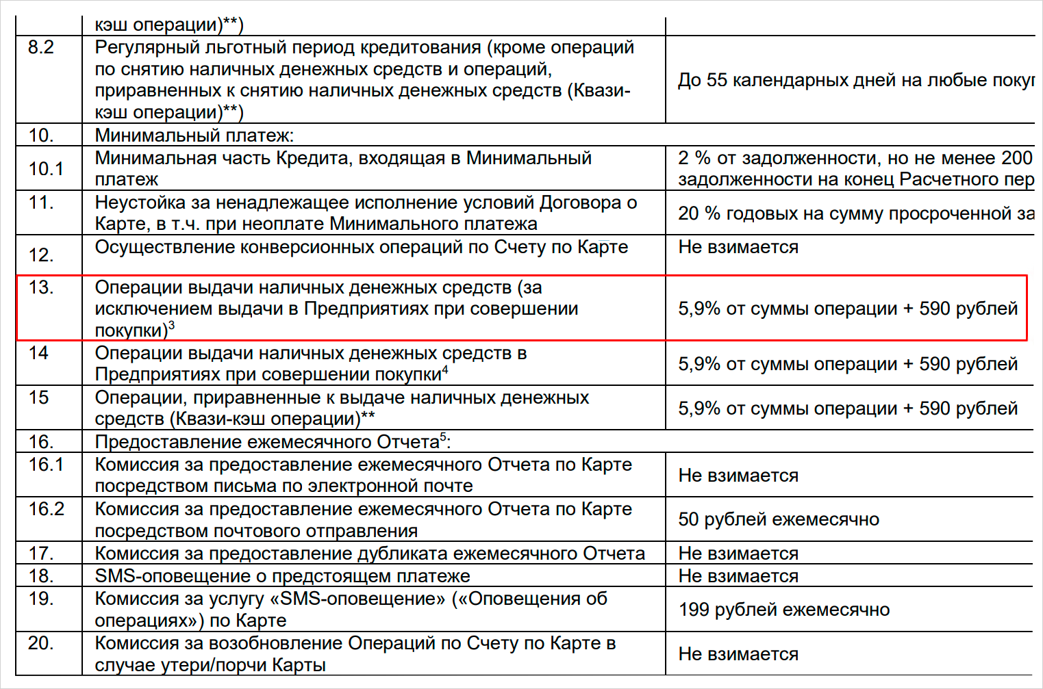 Выдача наличных с кредитной карты «115 дней без %» обойдется в 5,9% от суммы снятия, плюс фиксированные 590 рублей. Чтобы получить наличными 10 тысяч рублей, придется заплатить 1 180 рублей. В банкоматах «Ренессанса» и других банков комиссия одинаковая. Столько же возьмут за обналичивание средств с кредитки в магазине, аптеке, кафе или салоне связи.
