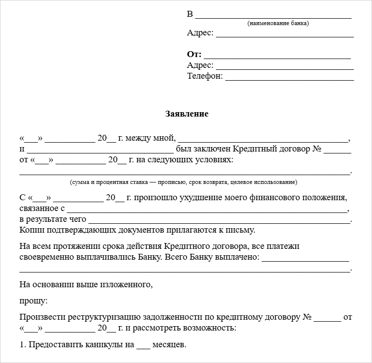 Договориться с банком о реструктуризации. Возможно, кредитор согласится на уступки: сделает ежемесячный платеж меньше или даст отсрочку на несколько дней. Но обычно для реструктуризации нужны основания. Например, потеря работы или временная нетрудоспособность.