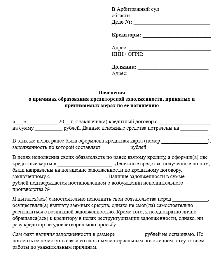 Пояснения могут потребоваться и в ходе самой процедуры банкротства — например, если управляющий заинтересуется последними сделками должника и посчитает, что какие-то из них совершены с предпочтением. Но подготовка пояснений — это задача не самого должника, а юристов, сопровождающих процедуру. Наши специалисты знают, как их правильно написать и какие доводы использовать, чтобы защитить интересы должника.