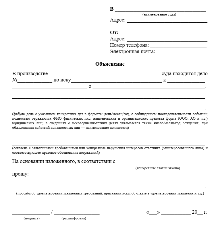 Всё содержаниеЧто такое письменные пояснения и объяснения в суд