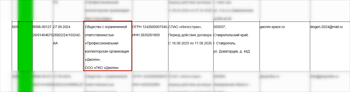 ПКО (расшифровывается как профессиональная коллекторская организация) «Диоген» — довольно молодое агентство из Ставрополя. В качестве юридического лица оно зарегистрировано 18 июня 2024 года. В реестр ФССП внесено в августе того же года под номером 605.