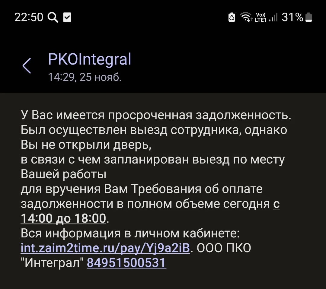 Если решили погасить долг, делайте это грамотно. Не платите по реквизитам, которые видите в смс или мессенджере. Зайдите на официальный сайт ООО ПКО «Интеграл» и возьмите реквизиты там.