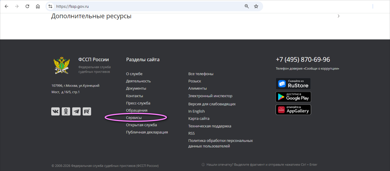 Зайдите на официальный сайт ФССП по адресу: fssp.gov.ru. Далее действуйте так:
