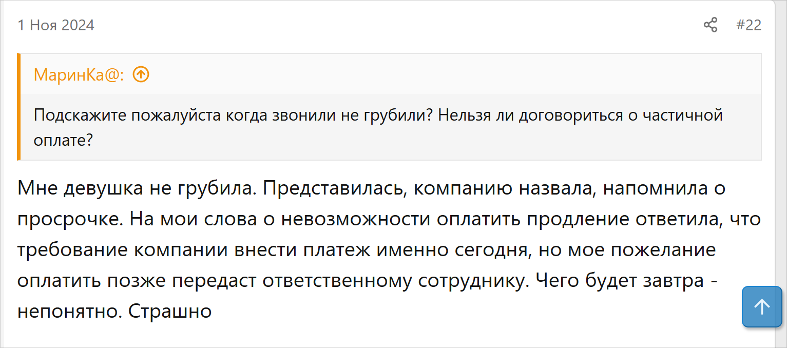В отзывах некоторые пишут, что с менеджерами ПКО «СК» можно договориться об оплате частями. Условия рассрочки нужно обговаривать в каждом отдельном случае. Коллекторы могут запросить подтверждение трудной финансовой ситуации и готовность к регулярным платежам.