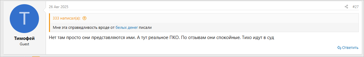 На популярных форумах должников не так много отзывов о работе ПКО «Справедливость». Что важно: негативных комментариев почти нет. Пользователи отмечают, что агентство минимально взаимодействует с должниками, закон не нарушает. Вместо многомесячных дозвонов быстро просуживает задолженность и передает ее приставам на принудительное взыскание.