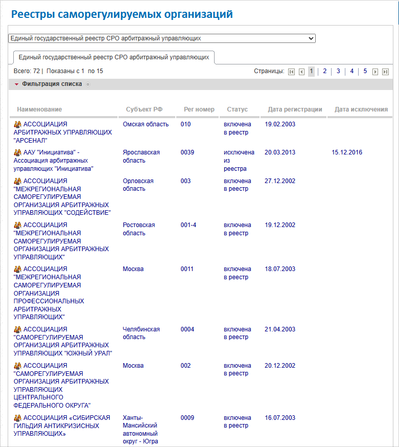 Саморегулируемые организации АУ следят за тем, чтобы их члены работали честно и соблюдали профессиональные стандарты. Все официально зарегистрированные СРО вносятся в государственный реестр. Чтобы объединение управляющих получило статус СРО, в нем должно быть не менее 100 участников, которые провели в общей сложности не менее 100 процедур банкротства.