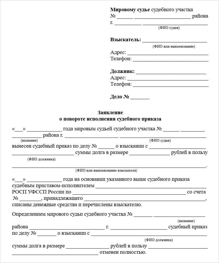 Делимся образцом заявления и рассказываем, какую госпошлину придется заплатить за поворот исполнения судебного приказа.