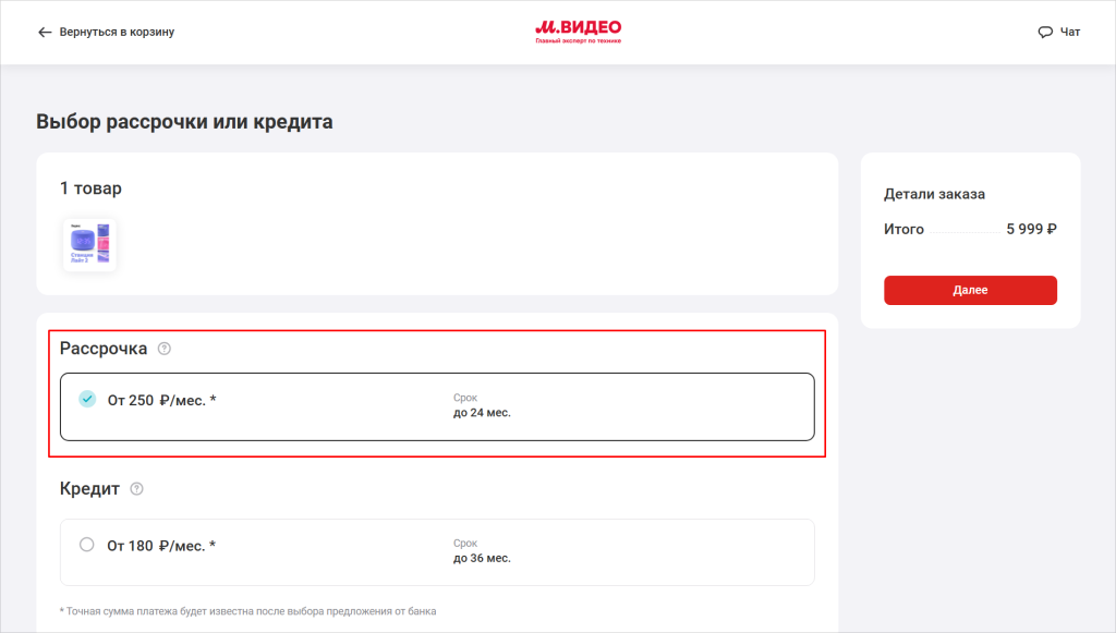 Чтобы взять рассрочку в «М.Видео» онлайн, необходимо: