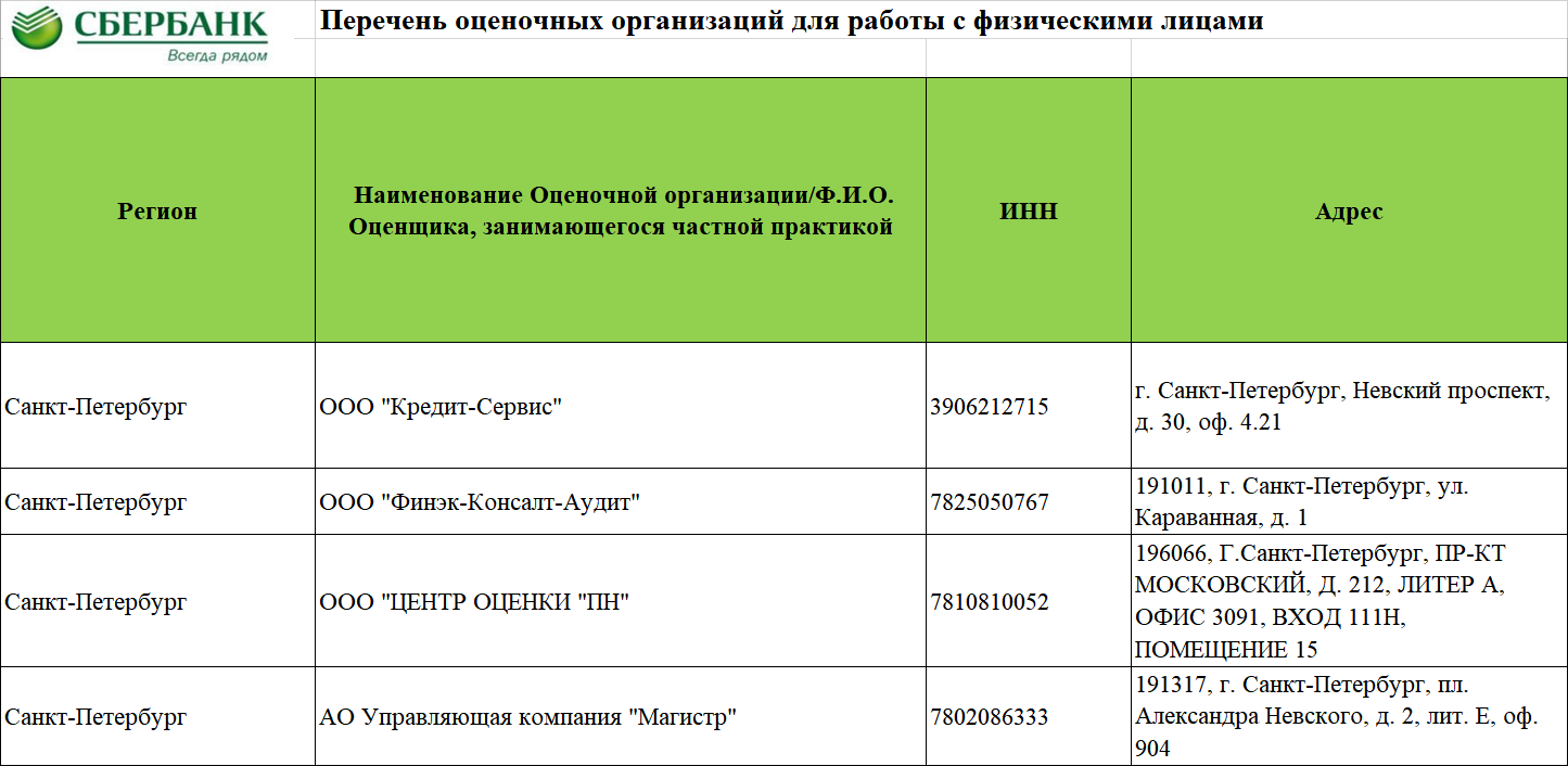 В Санкт-Петербурге и Ленинградской области у Сбербанка есть более 70 оценочных организаций-партнеров