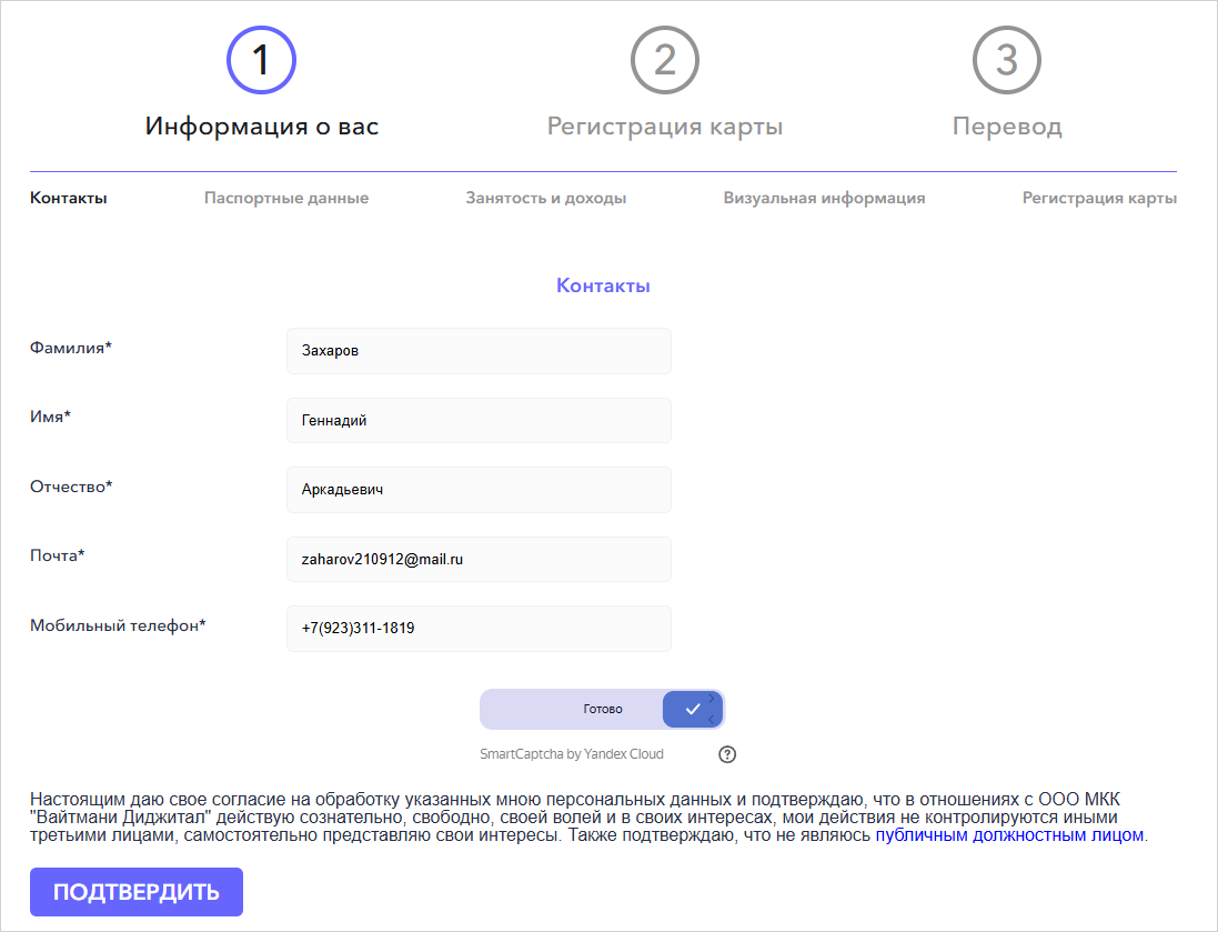 Чтобы выполнить вход в виртуальный личный кабинет МФО «Вайтмани Диджитал»: