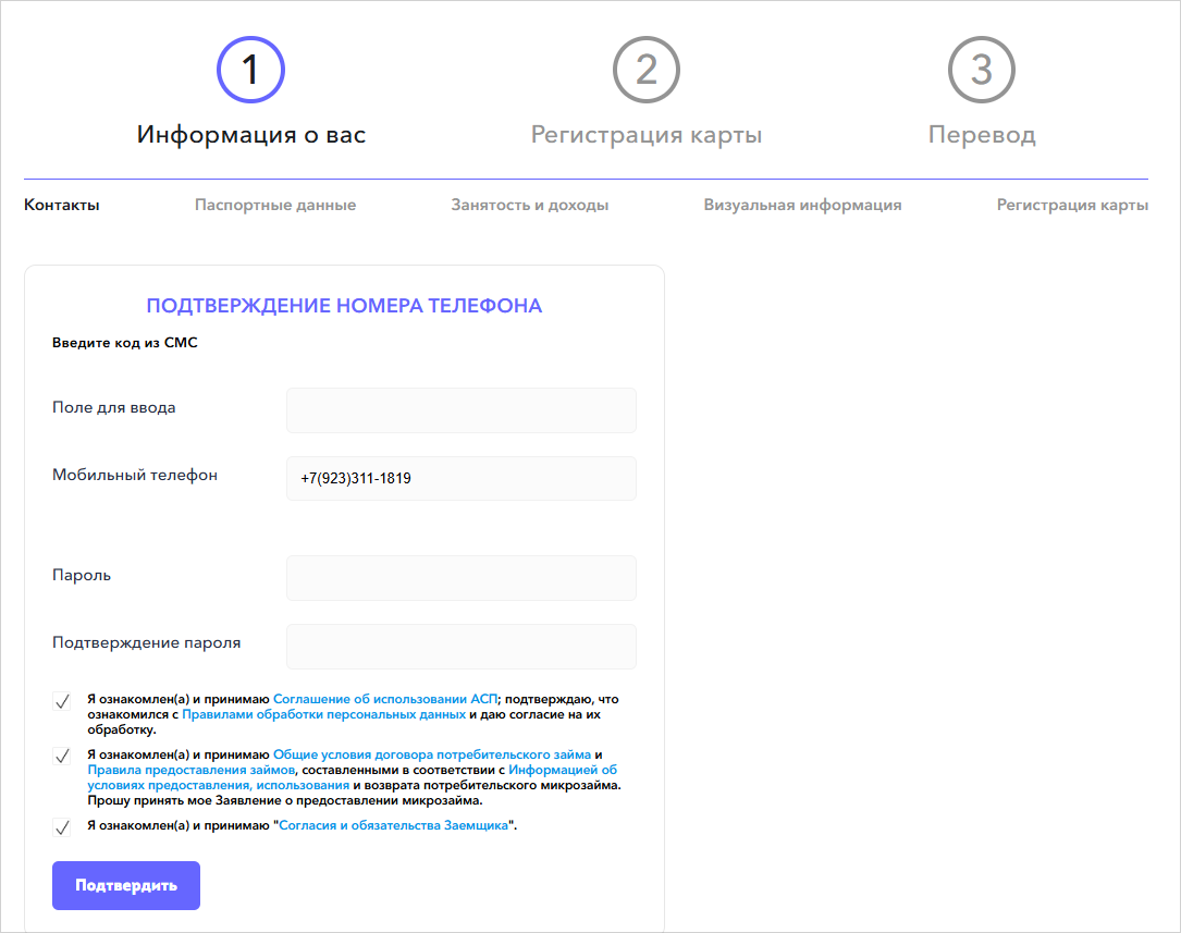 Регистрация в ЛК «Белые деньги» происходит вместе с выдачей первого займа — оставляем пошаговую инструкцию.