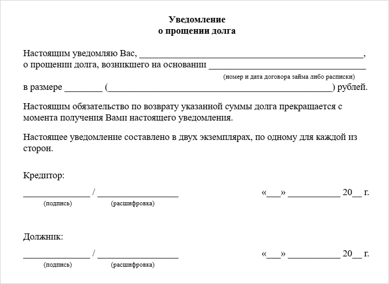 Надежный способ — составить соглашение или уведомление о прощении долга. Все происходит так же, как мы описали в предыдущем блоке.