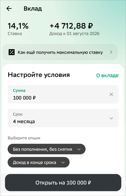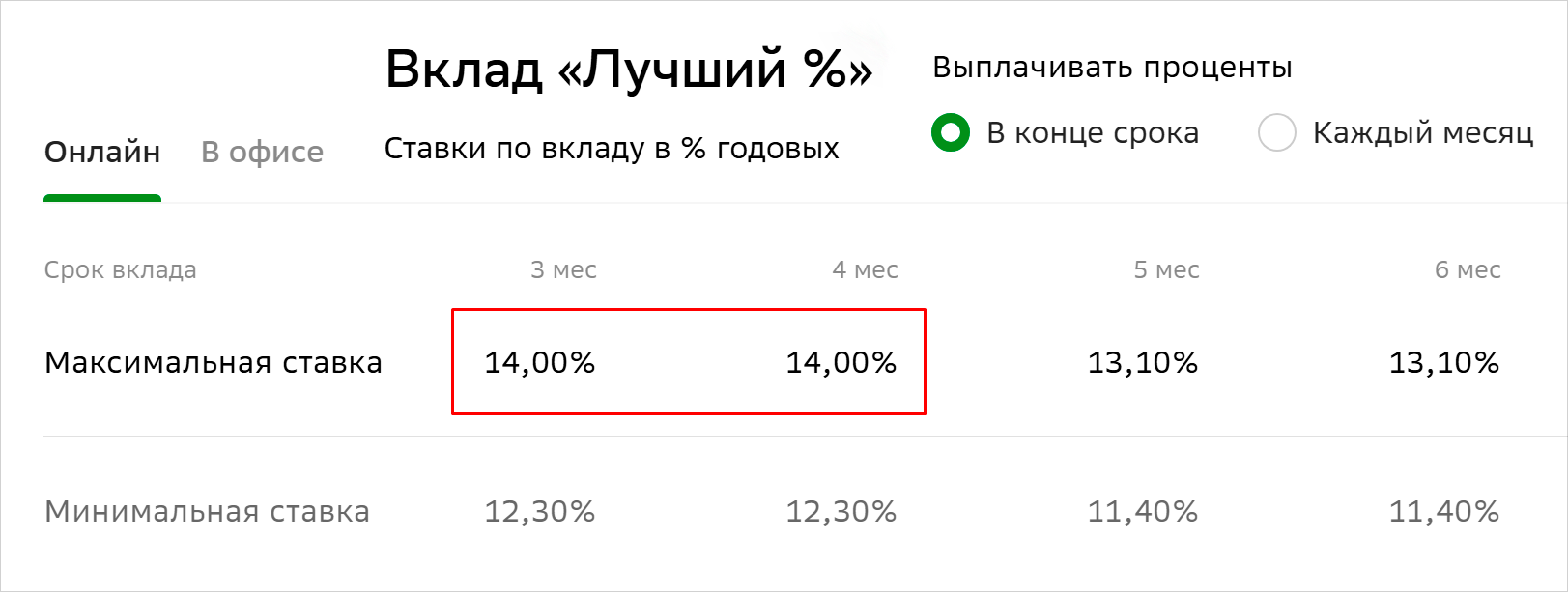 Максимальную ставку 14% можно получить, если открыть вклад: