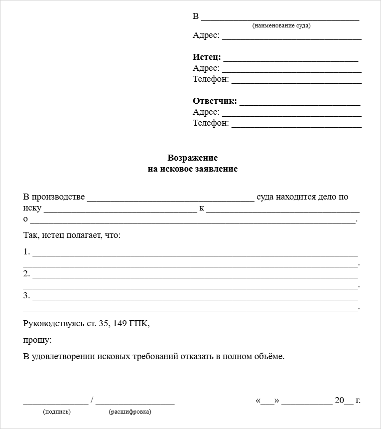 Как правильно составить возражение на исковое заявление