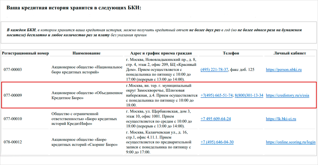 В обоих случаях вам отправят перечень и контакты кредитных бюро, где есть данные о вас.