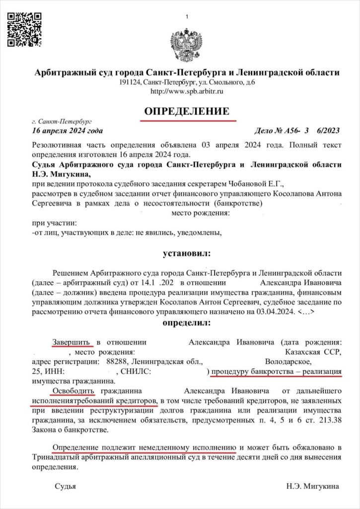 - Но списание задолженности вместе с процентами и штрафами произойдет только на последнем заседании — когда суд завершит процедуру и выдаст специальное определение.