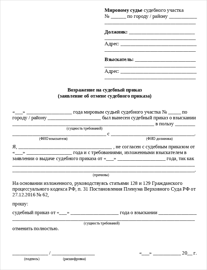 Тут есть хорошая новость: вы можете легко отменить судебный приказ. Для этого в 10-дневный срок с момента, как получили копию документа, направьте судье возражение. Ничего доказывать не нужно — достаточно того, что вы просто не согласны. Это разрешает статья 129 ГПК РФ. Задолженность перед МФО не исчезнет, но вы получите передышку.