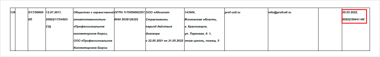 - Если поле заполнено, организация исключена из реестра.