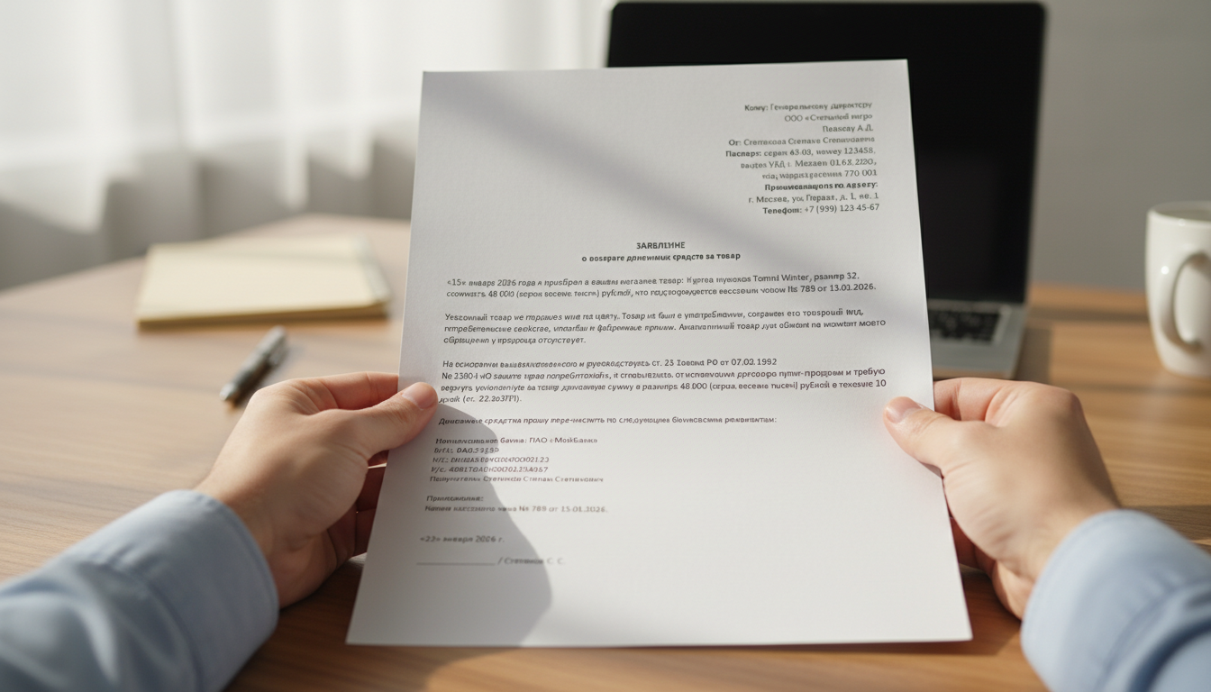 Забудьте о сложных юридических терминах. Пишите просто и понятно. Ваша цель — обозначить себя, подтвердить платеж и обосновать причину возврата.