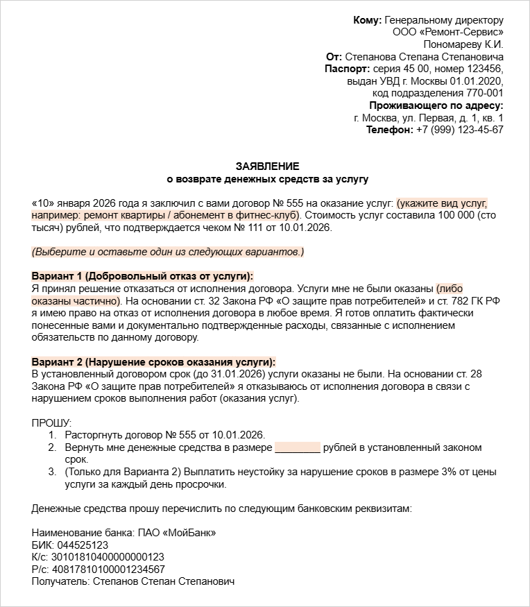 Не ждите, пока организация сама одумается и вернет вам денежные средства. Напишите заявление по одному из образцов, зафиксируйте требование письменно — и закон заработает в вашу пользу.