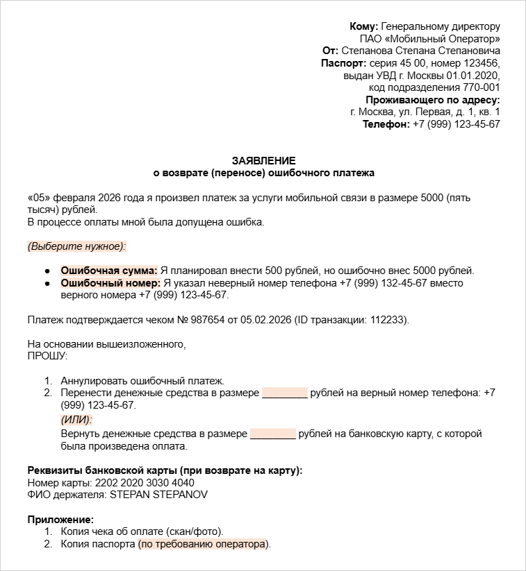 Обязательно приложите чек об оплате или банковскую выписку. Без подтверждения платежа оператор не сможет найти ваши деньги и откажет в возврате.