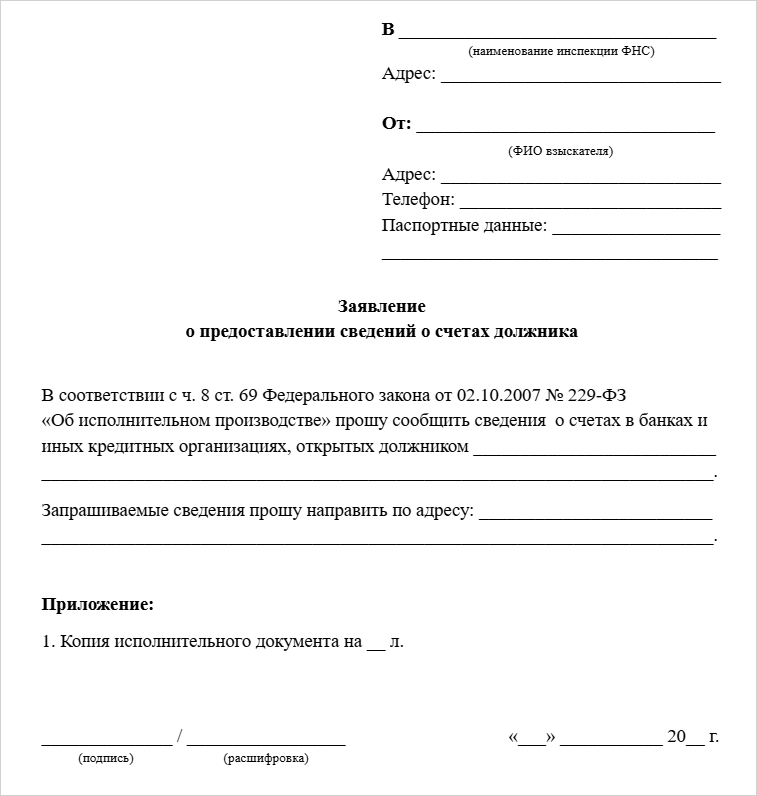 Чтобы узнать, в каких банках у должника открыты счета, взыскателю необходимо подать запрос в налоговую службу.