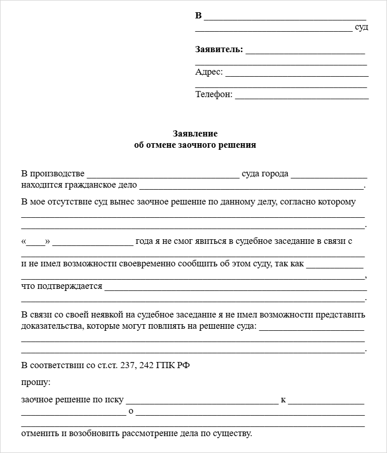 Может показаться, что заочное решение — наименее оптимистичный сценарий для ответчика, ведь отсутствием в суде он лишает себя права на защиту. Но у ответчика еще остаются шансы повлиять на дело: для этого придется обращаться в суд, где он может отменить заочное решение — главное, чтобы заявление подавалось вовремя.Суд обязан направить ответчику копию заочного решения в течение 3 дней с момента его принятия. У ответчика будет 7 дней после получения копии, чтобы подать заявление об отмене. Суд узнает о доставке решения ответчику через уведомление о вручении.
