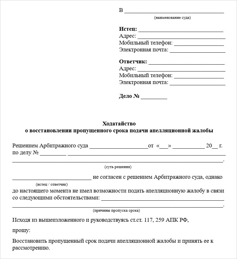 Если направить ходатайство по истечении недельного срока, суд сможет восстановить его только в пределах месяца, отпущенного на подачу апелляции. Если закончился и он, 7 дней для отмены решения вернуть уже не получится — только 30 дней на обжалование.