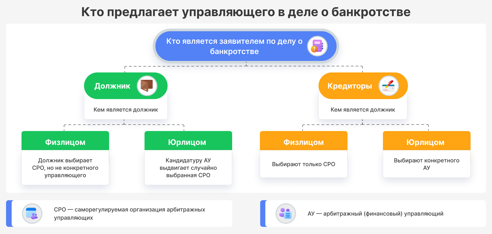 Помогут с выбором надежной СРО, из которой назначат грамотного управляющего.
